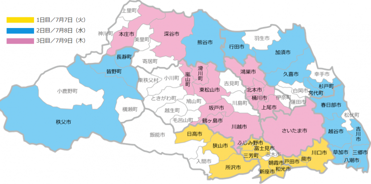 | 46 | 埼玉県 | 7月7日(火)~7月9日(木) |