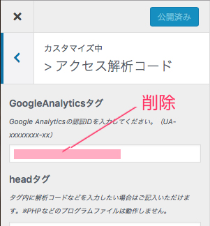 アナリティクスコードは勝手に設置されるものではなく、自分で入れているはずです。