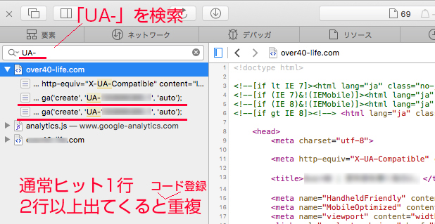 テーマを変更したあと、昔プラグイン「All in One SEO Pack」でコードを入れていたのをすっかり忘れて、「テーマでも解析コード設定できるんだ〜♫」と喜んで入れてしまっていたのでした。