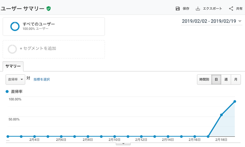 直帰率0%〜10%未満は異常、PVも実際より多く表示