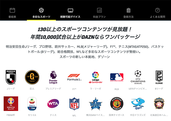 サッカー以外のコンテンツも年々充実しており、バスケットボール、野球、総合格闘技など多彩なジャンルが楽しめるようになっています。