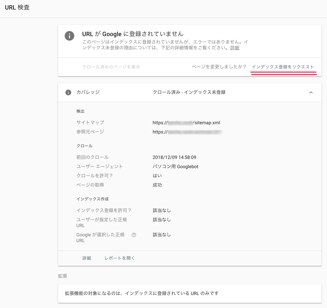 「クロール済み - インデックス未登録: ページは Google によりクロールされましたが、インデックスには登録されていません。今後、インデックスに登録される可能性がありますが、登録されない可能性もあります。この URL のクロールのリクエストを再送信する必要はありません。」