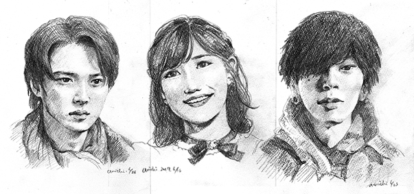 1人あたり5分程度でスケッチ。デフォルメしないリアルな似顔絵です。(当サイト管理人です!^^)