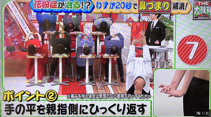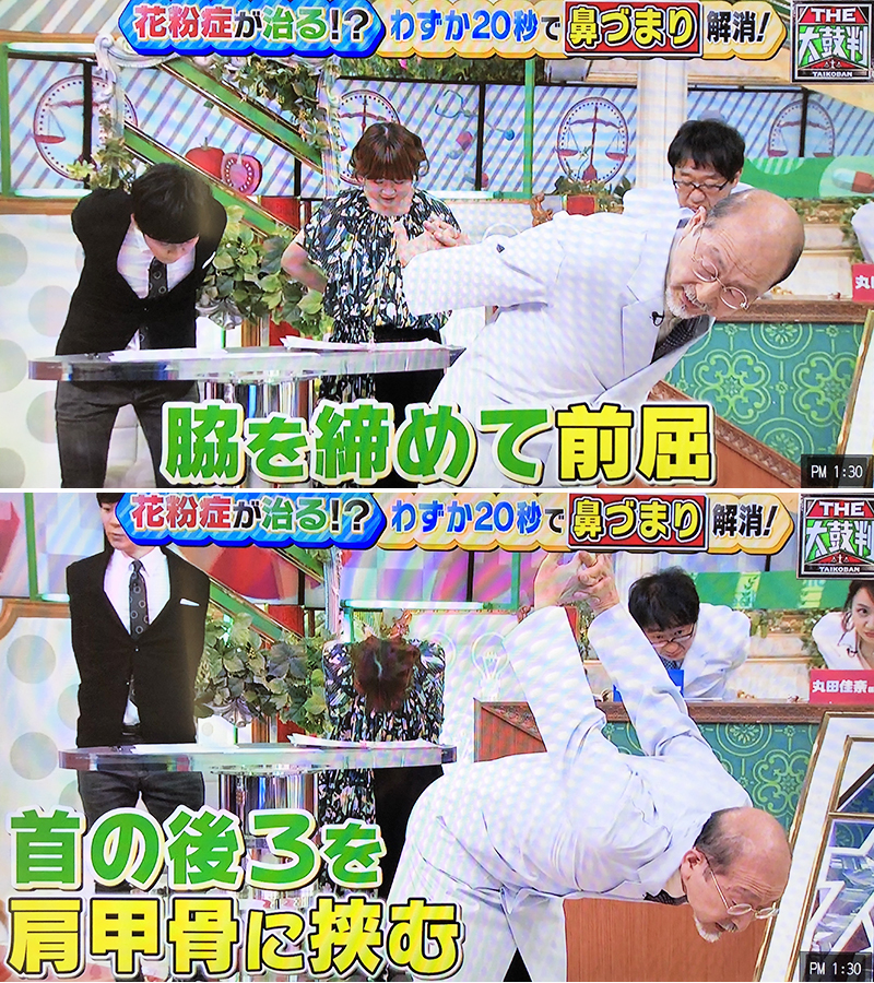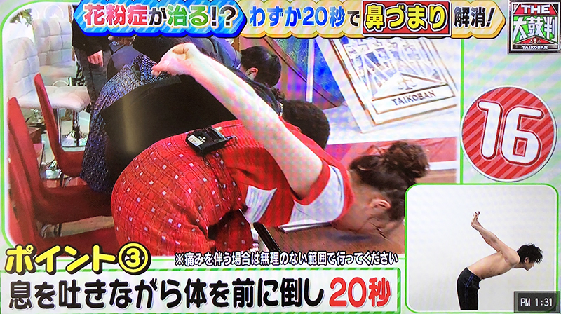 TBSテレビ午後7時「名医のTHE太鼓判」(3月25日放送)で、鼻づまりを軽くするストレッチが紹介されました。花粉症や風邪で鼻づまりがひどいときにこれは使える!と思いメモしたのでシェアいたします。
