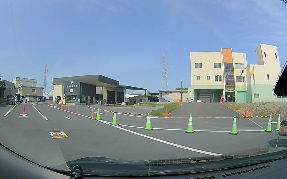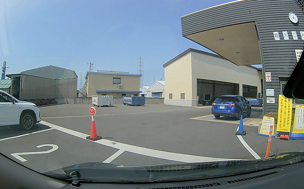 誘導される場所へバックで駐車。