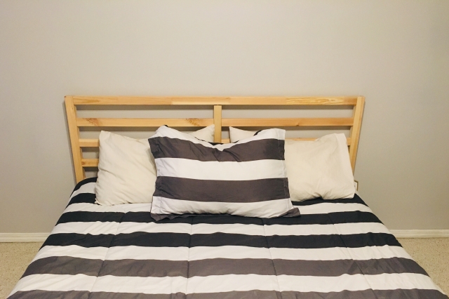 まず、ベッドに寝てみて、家具などの角が自分の顔の方に向いていないかチェックして対策を。
