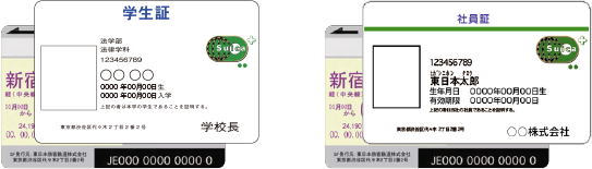 Suica付学生証・社員証は、SuicaとIC学生証・社員証が一体化したカード。