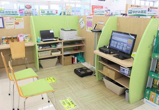 一部の店舗で脳年齢・血管年齢やストレスチェックなどを自分で測定する無料健康チェックコーナーがあります。