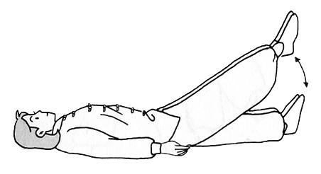仰向けに寝て、両足を30度の高さまで上げて静止。