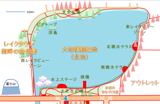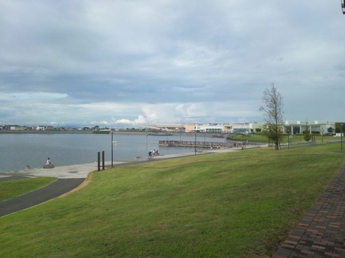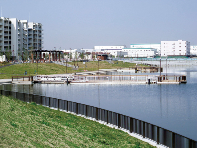 「イオンレイクタウン」のアウトレット館に隣接している大相模調節池。
