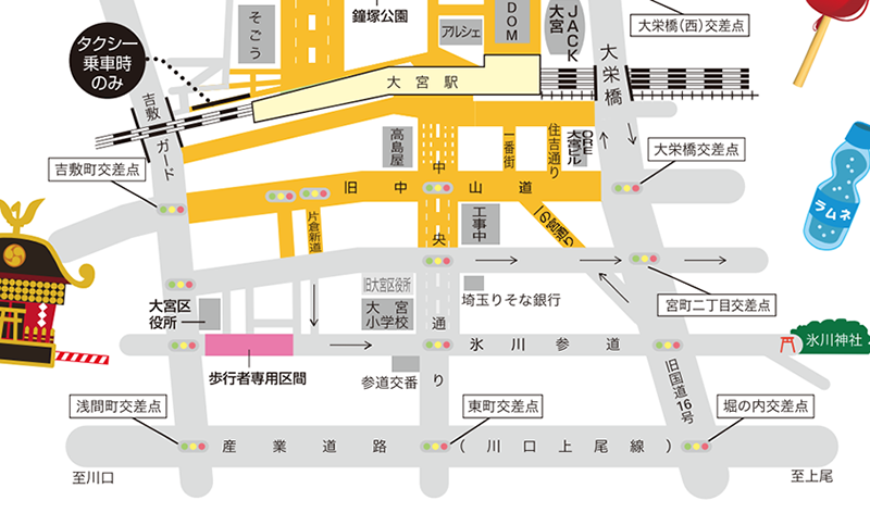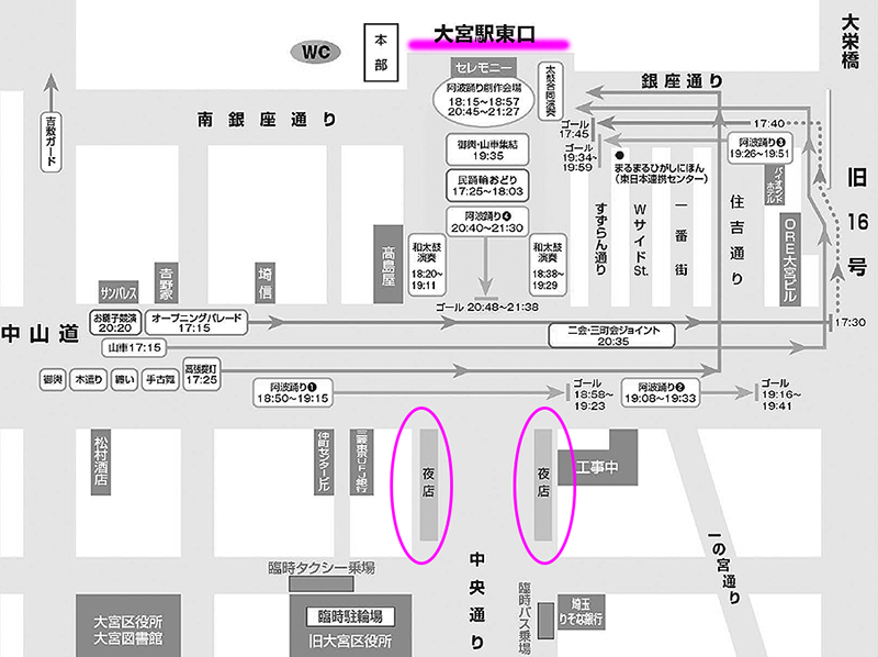 | アクセス | 大宮駅東口から徒歩すぐ ※1日は17:00〜21:00まで、2日は17:00〜22:00まで、大宮駅東口周辺で交通規制が実施されます。 |