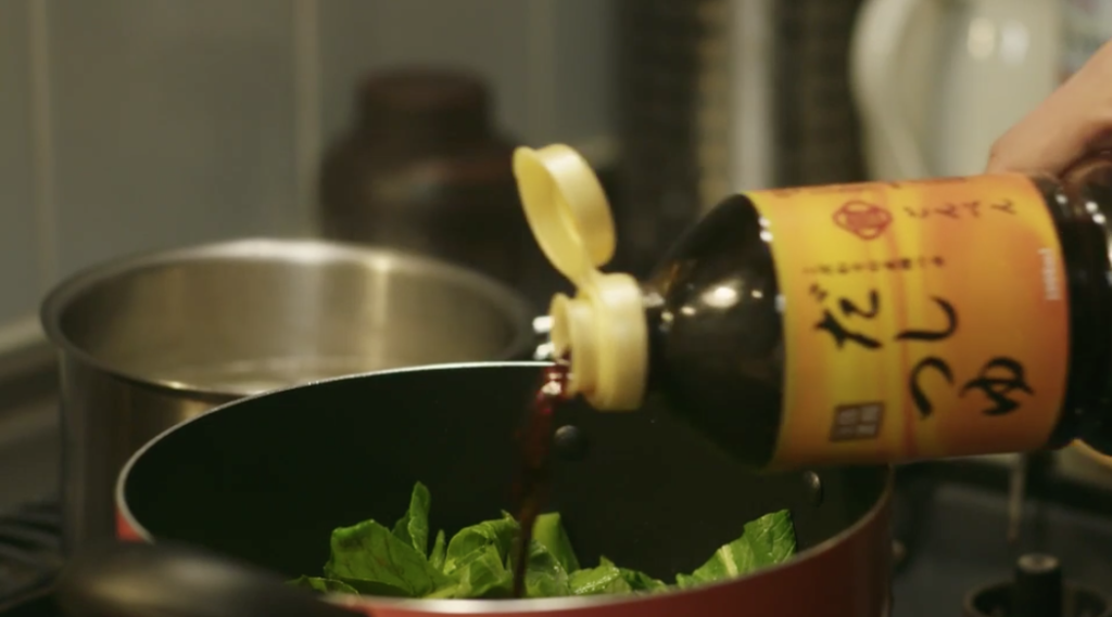 めんつゆはボトルからどぼどぼ入れていました。