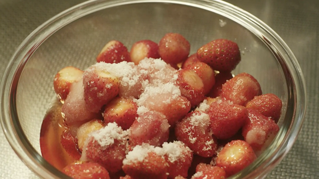 4. まんべんなく砂糖をまぶしたいちごをボウルの中でそのまま3時間以上置く。