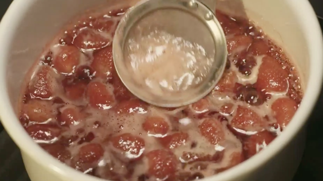 7. いちごからどんどんアクが出てくるので丁寧にすくっていく。