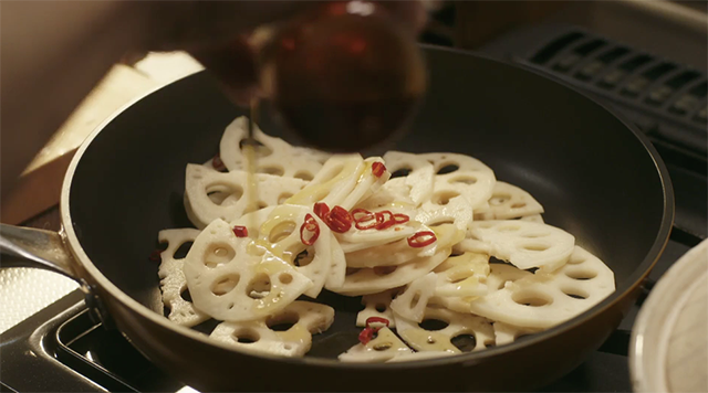 3. 調味料が煮詰まってれんこんに照りが出てきたら完成。