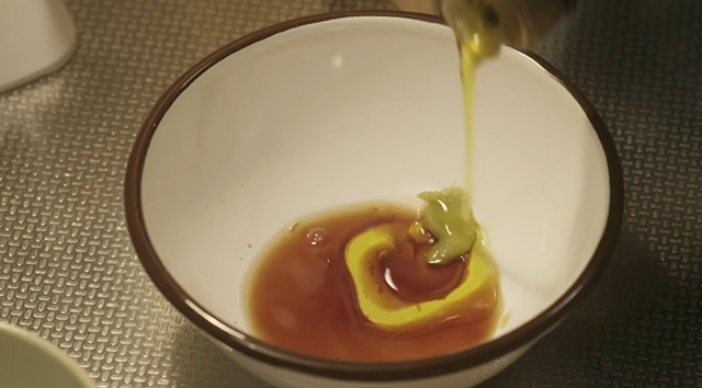 レモン汁・しょうゆ・わさび・オリーブオイル各適宜を混ぜ合わせる。