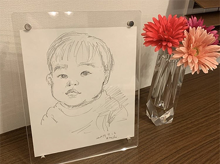 - 赤ちゃんの場合は、保護者の方にだっこしてもらった状態で私が描きやすい場所を探して移動してスケッチいたします。(急いで描きます!^^;)