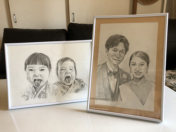 出会った方の喜びの表情やコメントが私を幸せにしてくれるので、いつも「描かせてくれてありがとうございます」という気持ちで描いております。