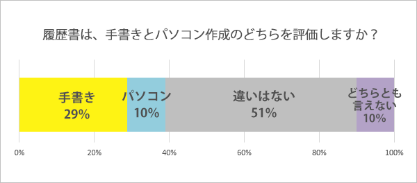 「手書きかPCかで評価に影響はない」と答えた採用担当者は半数、手書きを評価しているのは全体の3割にも満たないという結果でした。