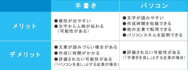 → パソコンスキルや作成能力を履歴書から判断されます。PC作成がむしろ常識と答えている企業も。