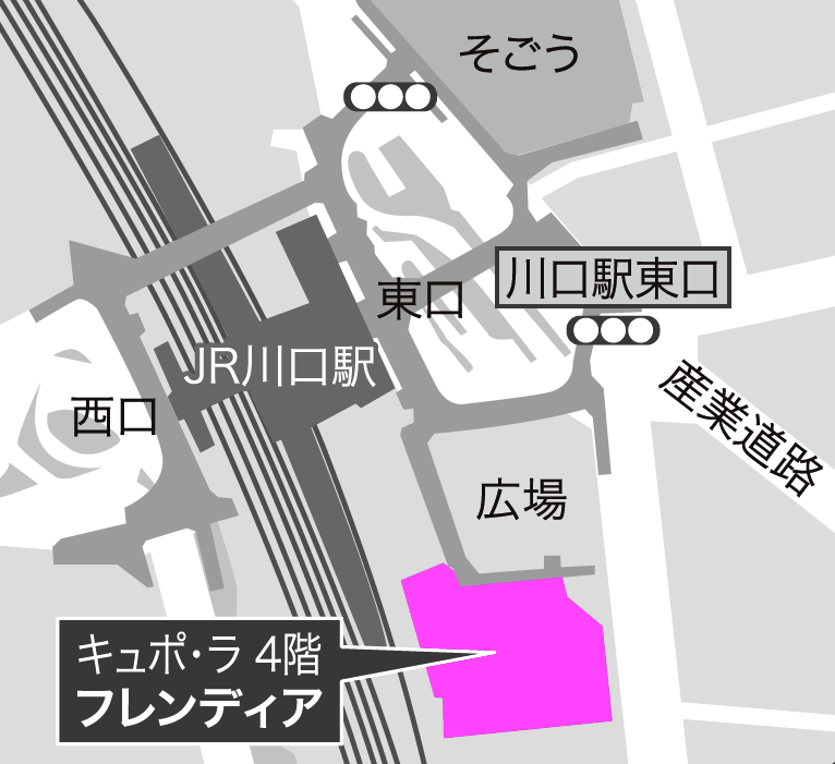 図書館、川口市行政センター、スーパー(マルエツ)、無印良品などが入っている複合施設です。イベント会場はこのビルの4Fです。