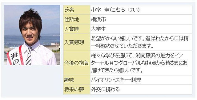 藤沢市観光課・藤沢市観光協会ウェブページ「湘南江の島 海の女王&海の王子 2010年度」から
