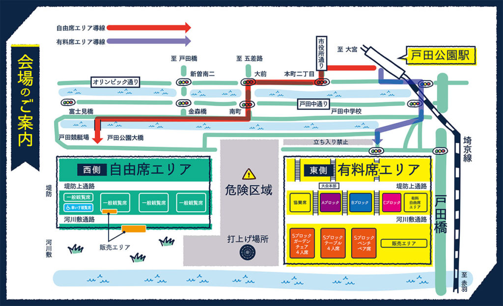 ・危険区域東側(有料席エリア)への入場の際はチケットが必要となります。