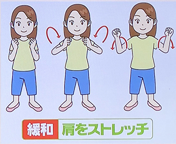- 肩を意識して大きく肩をまわす(上着を脱ぐような動作)
